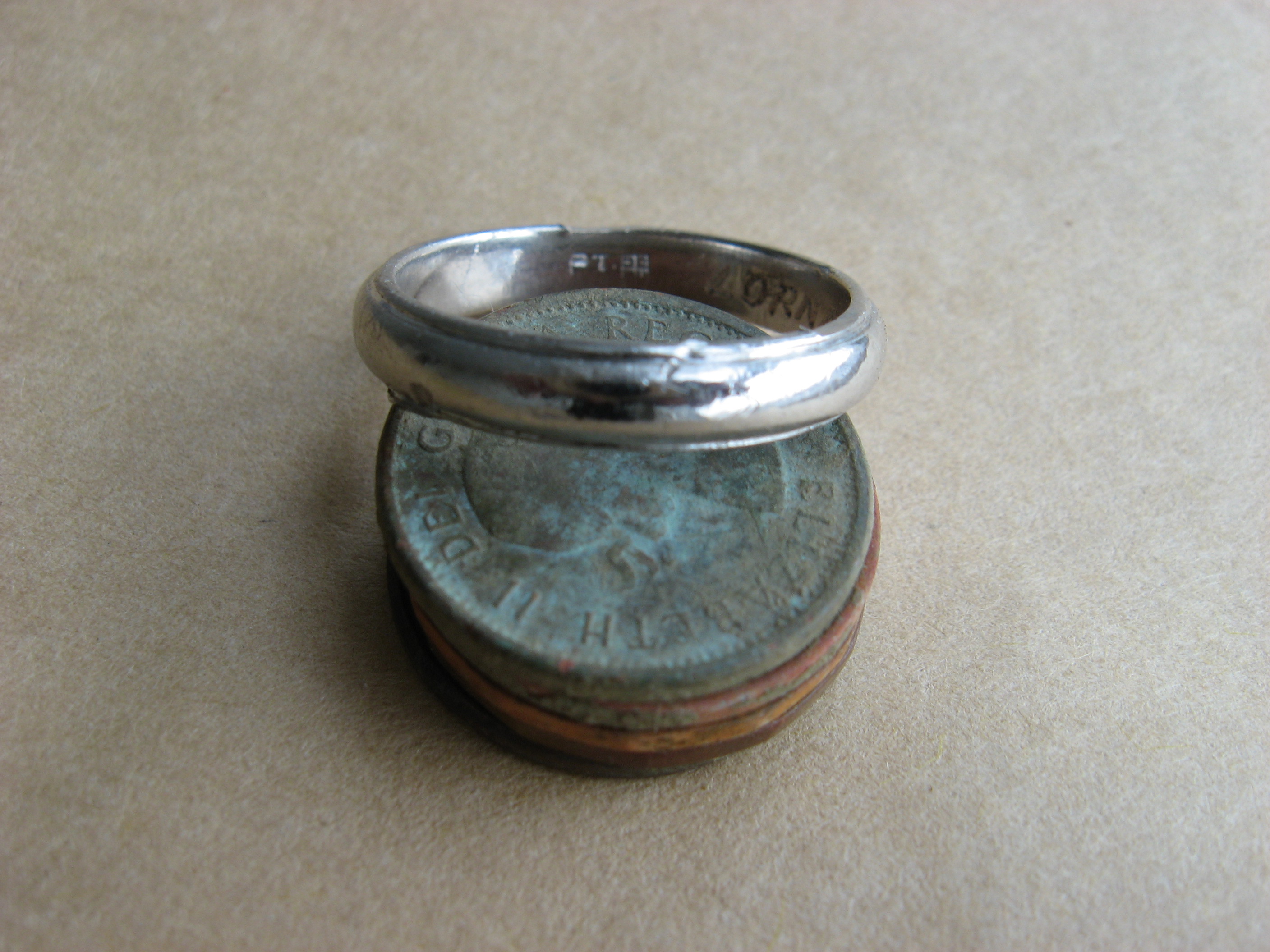 Платиновая обручалка. Внутри выгровированы имена и дата помолвки 1980. Моя первая платина в коллекции. Глубина залегания 10см.