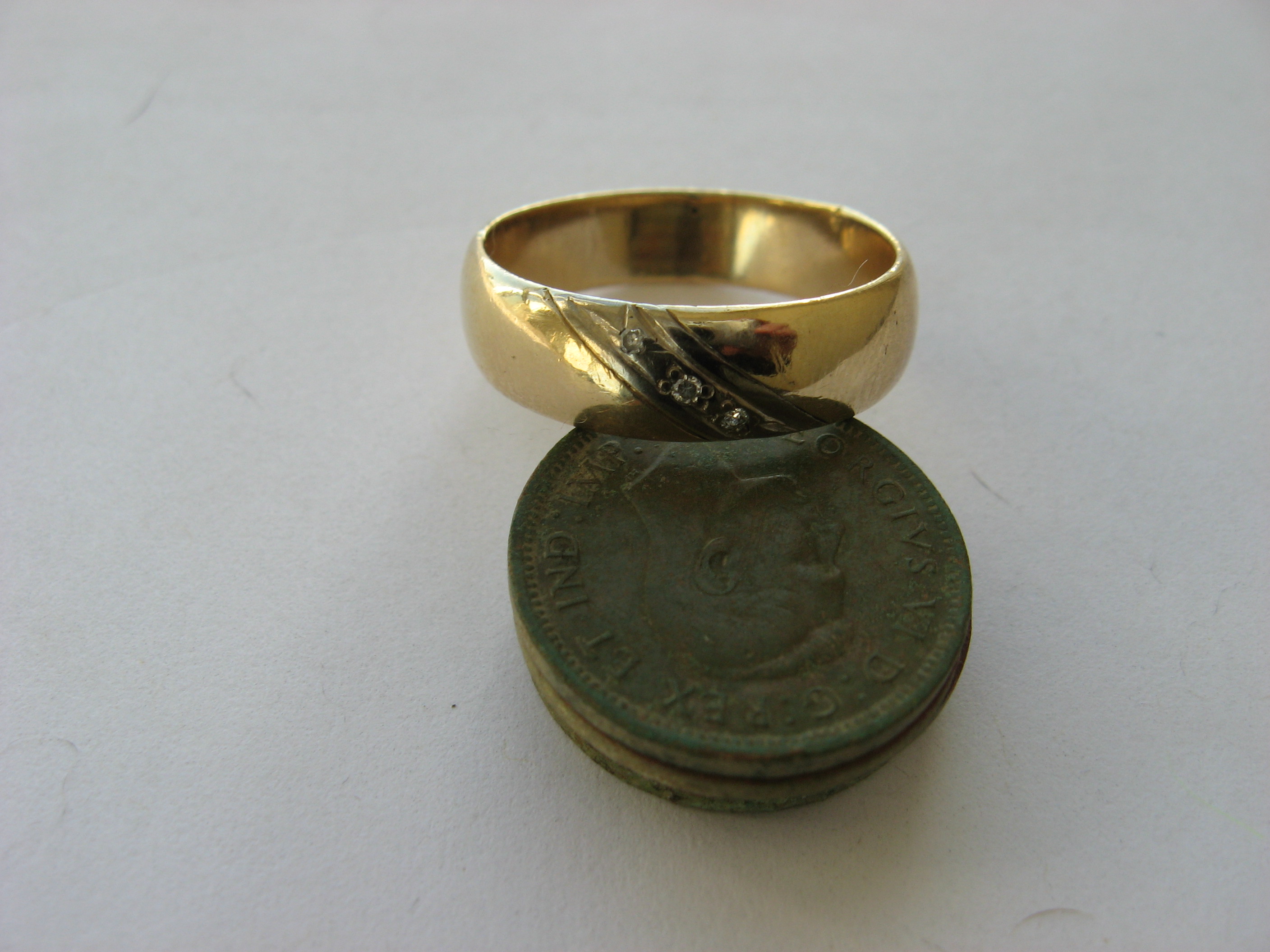 Обручалка, 10к с бриллиантовой крошкой. Приятная находка, почти на поверхности, где-то 5-7см
