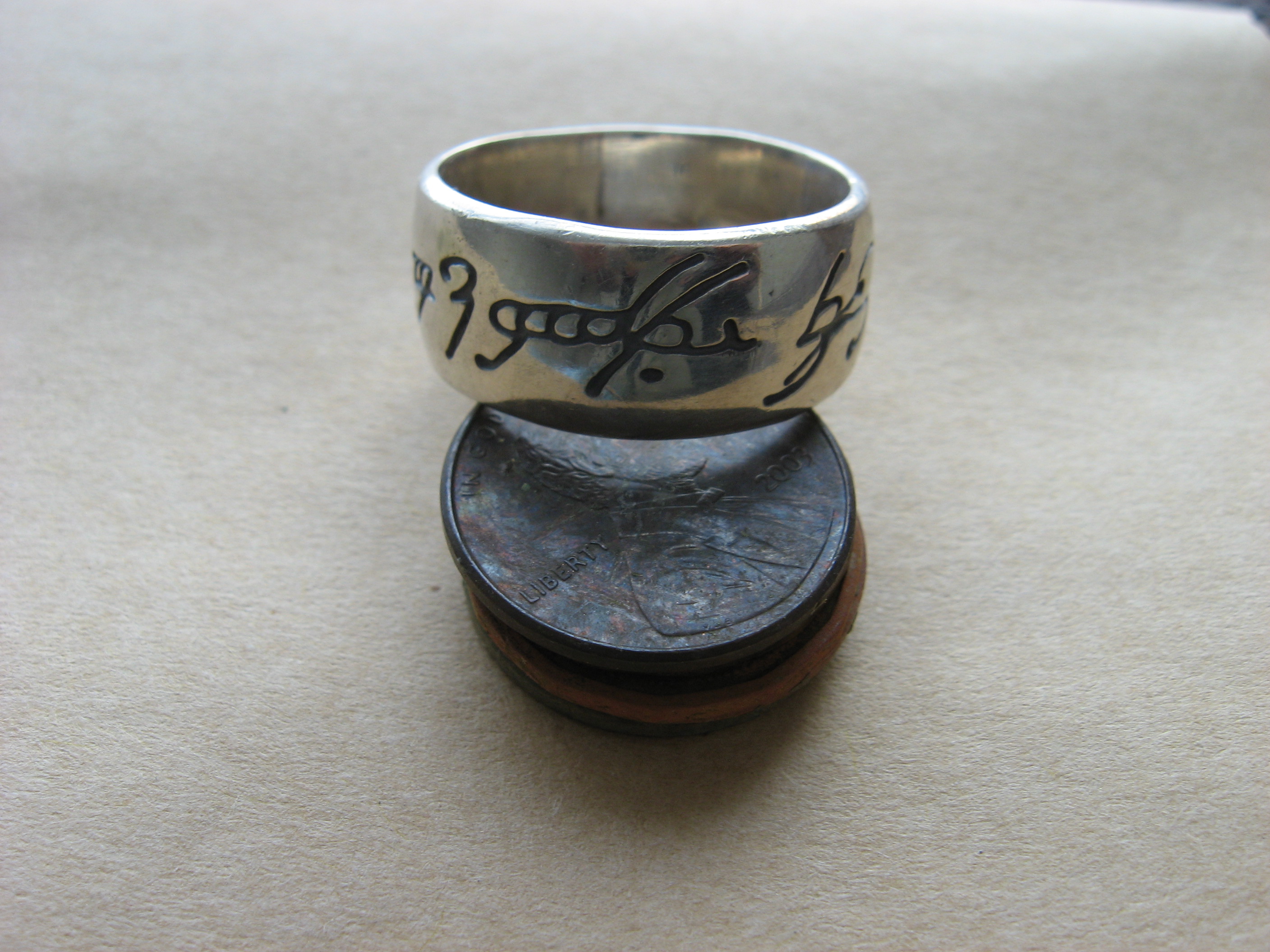 «Моя прелесть!» (с) С пылу с жару прямиком из Мордора :) Не могу разобрать только, это арабская вязь или индийская деванагари. Серебро, глубина залегания 14см.