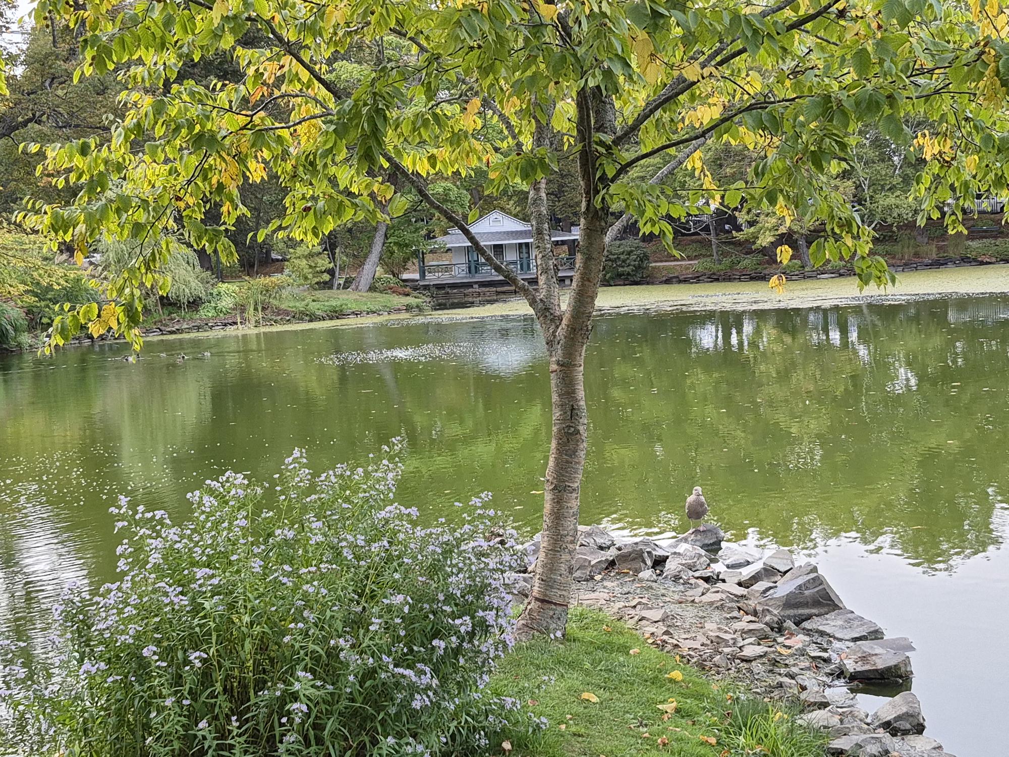 А ещё я случайно наткнулся на тропинку, ведущую в заповедник Пойнт-Плезант-Парк. Это была уже совсем другая природа — не ухоженная, а дикая и простая. Широкая грунтовая дорога вела сквозь высокий лес. Солнце пробивалось через листву, а под ногами шуршали начавшие опадать листья. Изредка между деревьями мелькал вид на воду — не парадный залив, а какая-то тихая, заросшая камышом заводь. Я шёл, никуда не торопясь, и встретил всего пару человек: женщину с собакой, семью с кучей пёстрых ребятишек и бегуна, который кивнул мне на ходу. Здесь не было ничего особенного, ничего грандиозного, но была какая-то тихая, простая радость: просто идти по лесной тропе, дышать свежим воздухом и слушать, как ветер играет верхушками сосен. Это было место, где можно было ни о чём не думать, а просто быть собой. И вообще, природа в Галифаксе не фон, а полноправный хозяин. Это не уютные альпийские луга, а дикая, немного меланхоличная красота севера. Хвойные леса, тёмные и густые, подступают к самым окраинам города. Воздух пахнет хвоей, солёностью и влажной землёй. Даже в солнечный день чувствуется первозданная мощь и необузданность этих мест. Океан всегда рядом, его присутствие ощущается физически: в криках чаек, в туманах, которые могут накатить внезапно и плотно, как вата, окутав и скрыв всё вокруг всего за несколько минут.