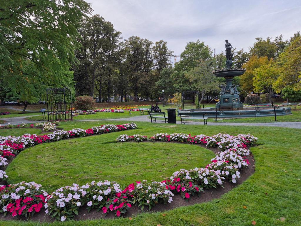 Помимо главных достопримечательностей, я люблю просто гулять без цели. Одно из лучших воспоминаний — это открытые для всех «Паблик Гарденс», викторианские сады прямо в центре города. Заходишь через ажурную калитку, и сразу попадаешь в другой мир. Шум машин остаётся где-то снаружи, как будто кто-то накрыл тебя стеклянным колпаком, а здесь только шелест листьев и спокойная тишина. Дорожки вились между идеальными зелёными газонами и яркими клумбами, где все цветы: розы, пионы, какие-то скромные синие цветочки, росли аккуратными рядами, будто их только что расставили для красоты. Пахло травой, влажной землёй и чем-то сладким, цветочным. Я присел на скамейку у пруда с утками и лебедями. Пожилая пара рядом молча сидела держась за руки, и было так тихо и хорошо, что не хотелось уходить. Это место не поражало воображение, а просто было очень уютным и мирным, как аккуратный, ухоженный садик у бабушки в деревне, только посреди большого города.