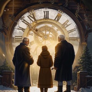 Александр Григорьевич отпер неприметную железную дверь. Впереди, в темноте, уходила вверх узкая, винтовая лестница. Они втроём начали подъём. Катя шла, цепляясь за холодные перила, каждый шаг давался ей с трудом. Николай Петрович шёл следом, готовый подхватить её, его собственное дыхание становилось всё тяжелее. Воздух пах сталью, машинным маслом и вековой пылью. Они прошли последний пролёт и вышли к небольшой площадке с дверью. Просторное помещение под самым циферблатом было заполнено гигантским механизмом. Латунные шестерни, стальные маховые колёса, блестящие валы, всё это складывалось в сложнейший организм, замерший в ожидании боя. В тишине слышалось лишь ровное, мощное биение. Пульс гиганта, отсчитывающий секунды.