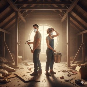 Этот этап мы откладывали, как нелюбимое лекарство. Пространство под самой крышей было последним оплотом прошлого, самым тёмным, пыльным и необжитым. Но отступать было некуда. И вот, надев маски и старые футболки, мы поднялись туда с ломом и решительным настроем. Воздух здесь всё так же отдавал сыростью старого дерева, мышиными гнёздами и застывшими годами. Для начала мы решили расчистить дальний угол, чтобы оценить масштаб работ.